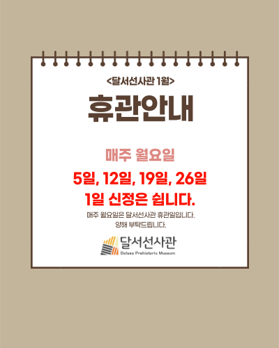 달서선사관은 2만년 전 대구의 역사인 석기유물, 유적을 만나보며 선사문화에 대한 이해의 폭을 넓히는 지역테마시설입니다.